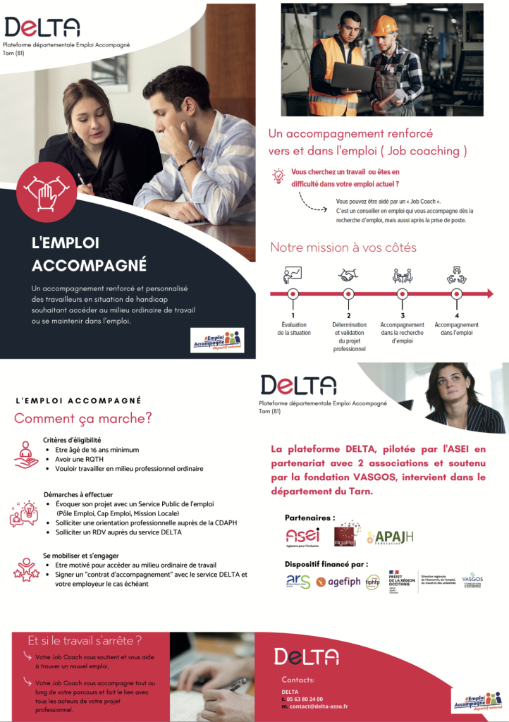 Le programme DELTA aide à trouver et garder un emploi dans le Tarn (81). Il est mis en place par l’ASEI, en partenariat avec l’AGAPEI et l’APAJH Fédération, et financé par l’État.